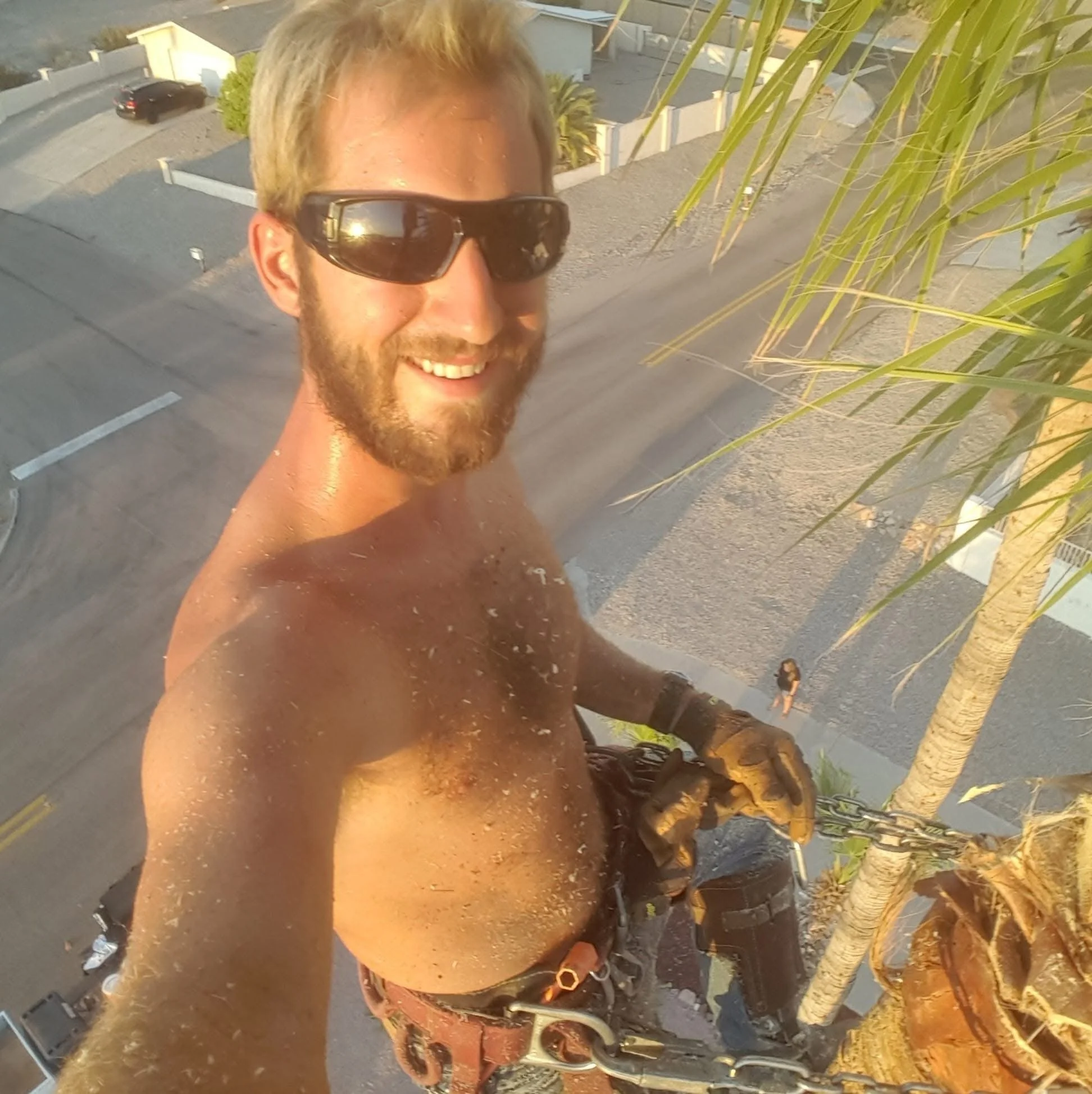 Hi, I’m Cal - the guy in the spurs. I’ve been running a saw since 2002 and climbing tall palms since 2016, learning the trade alongside my father. Tree work isn’t just a job for me - it’s a craft, one I take pride in doing cleanly, safely, and with the kind of detail you only get from someone who’s been there for years.